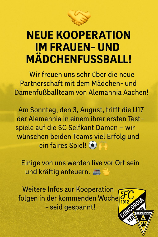 🤝 Neue Kooperation mit Alemannia Aachen Frauenfussball im Mädchen- und Frauenfußball!